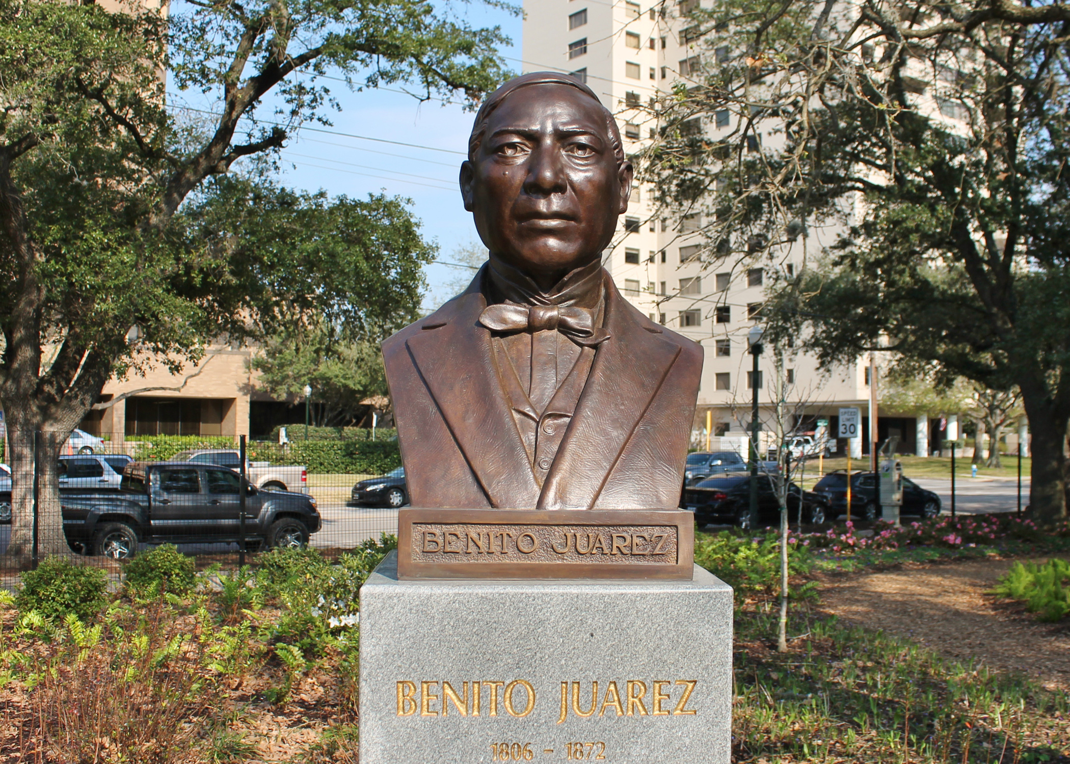 Artist Julian Martinez created the bronze bust of Mexican President Benito Juarez. Juarez served as a judge and city councilman in Oaxaca, governor of the State of Oaxaca, and eventually, as president of Mexico and remains a national hero. The bust was acquired by the City of Houston in 1985.